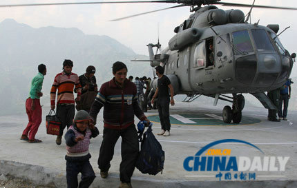 上萬(wàn)名軍人參與了救援行動(dòng),空軍的直升機(jī)也在救援幸存者,其中很多人都是來(lái)自喜馬拉雅山山麓的印度教朝圣者和游客。