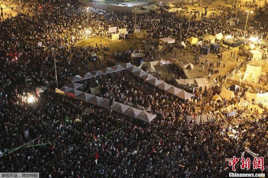 當(dāng)?shù)貢r(shí)間6月28日,埃及總統(tǒng)穆爾西的支持者和反對(duì)者在埃及北部多座城市爆發(fā)沖突。據(jù)埃及衛(wèi)生部的數(shù)據(jù)顯示,沖突已造成2人死亡、139人受傷。圖為穆爾西反對(duì)得在開羅解放廣場(chǎng)集會(huì)抗議。