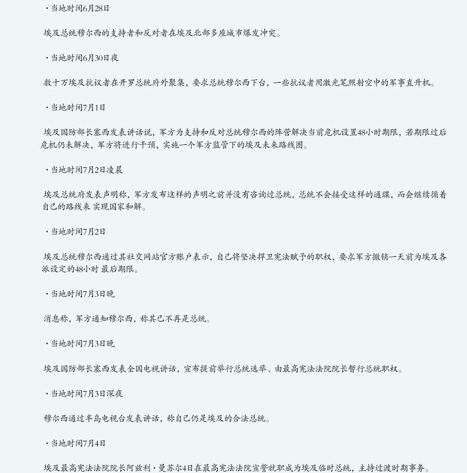 北京時間4日凌晨3時,埃及軍方宣布罷免總統(tǒng)穆爾西,軍方首腦在電視上發(fā)表公開講話,宣布暫停憲法。報道認(rèn)為,埃及軍方迄今仍大權(quán)在握,且在社會經(jīng)濟(jì)生活中也扮演了重要角色。
