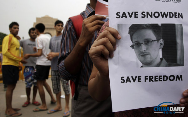 印度政府拒絕了斯諾登的庇護(hù)申請(qǐng),新德里民眾表示支持斯諾登。