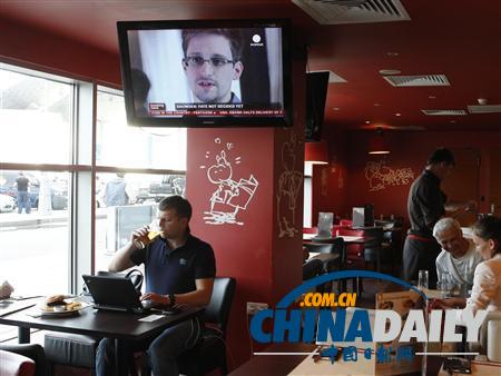 2013年7月24日,俄羅斯謝列梅捷沃機(jī)場一家咖啡館的電視里出現(xiàn)了斯諾登的畫面。