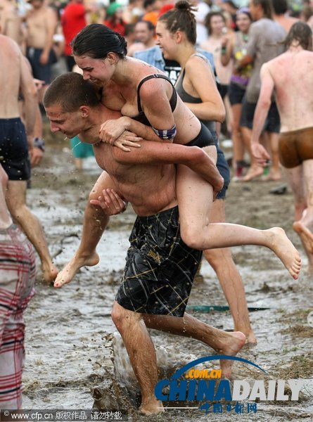 當(dāng)?shù)貢r(shí)間2013年8月1日,波蘭Kostrzyn,伍德斯托克搖滾音樂節(jié)開幕,青年人們參加傳統(tǒng)的泥坑沐浴。伍德斯托克音樂節(jié)是世界最大的搖滾音樂節(jié)之一,將一直持續(xù)到8月3日。