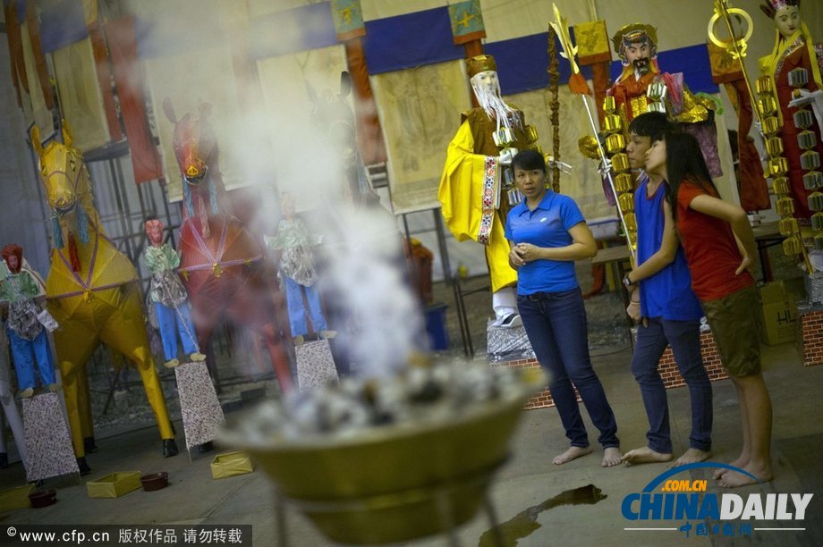 當(dāng)?shù)貢r(shí)間2013年8月16日,馬來(lái)西亞,華裔慶?!肮砉?jié)”。在華人民間的傳統(tǒng)習(xí)俗里,“鬼節(jié)”是個(gè)重大的祭祀祖先、普度眾生的日子,家家戶戶必大事慶祝一番。(圖片來(lái)源:CFP)
