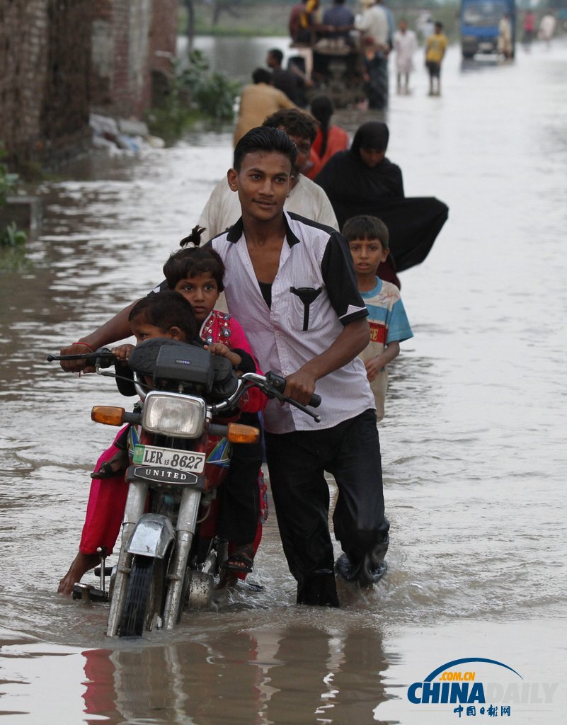 當(dāng)?shù)貢r(shí)間2013年8月19日,巴基斯坦穆里德,人們正在逃離洪水威脅地區(qū)。本年度季風(fēng)帶來的暴雨至少造成巴基斯坦全國108人遇難,受災(zāi)最嚴(yán)重地區(qū)為印度東部旁遮普省,該省有30人死于洪水,另有30萬人受影響。(圖片來源:CFP)