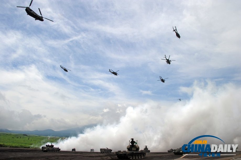 當?shù)貢r間2013年8月20日,日本靜岡縣御殿場市東富士演習場,日本陸上自衛(wèi)隊舉行實彈訓練。(圖片來源:CFP)