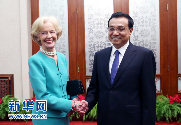 | 10月17日,國務(wù)院總理李克強(qiáng)在北京人民大會(huì)堂會(huì)見澳大利亞總督布賴斯。 新華社記者 姚大偉 攝 |