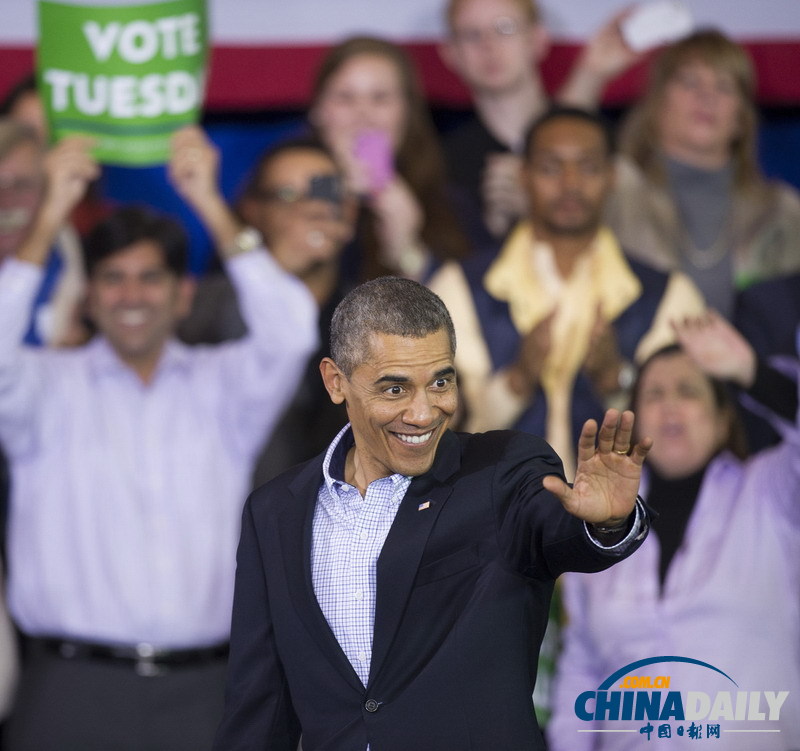 當(dāng)?shù)貢r(shí)間2013年11月3日,美國(guó)總統(tǒng)奧巴馬在弗吉尼亞州華盛頓李高中發(fā)表演講,支持民主黨籍弗州州長(zhǎng)候選人麥考里夫。
