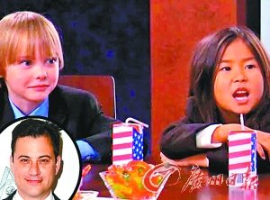 ABC電視節(jié)目“兒童圓桌會議”環(huán)節(jié)驚現(xiàn)辱華言論。小圖為主持人吉米·基梅爾。