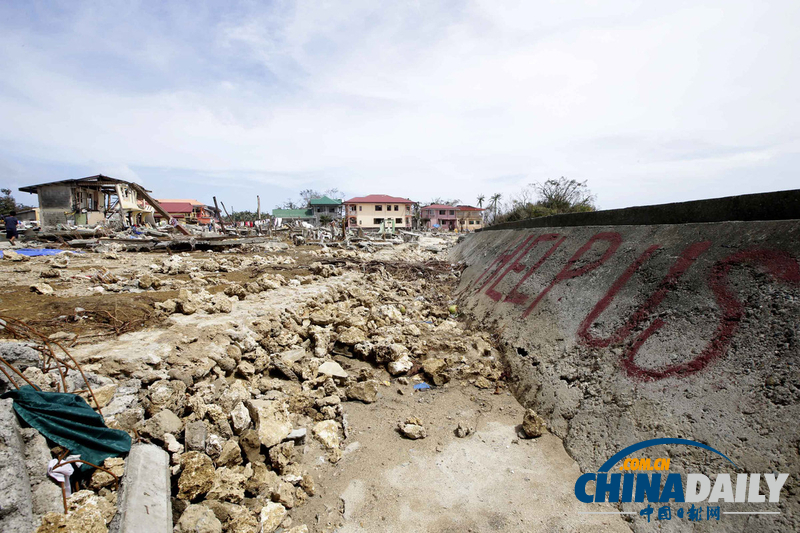 菲律賓臺(tái)風(fēng)災(zāi)后動(dòng)態(tài):災(zāi)民書寫巨幅英文呼救
