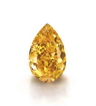 橙鉆出土自南非,美國(guó)寶石學(xué)院(GIA)給予它有色鉆石中最高的“鮮彩”(fancy vivid)評(píng)級(jí)。純正的黃鉆又叫“火鉆”,極其罕見。此前拍賣的火鉆從來(lái)沒有超過6克拉。