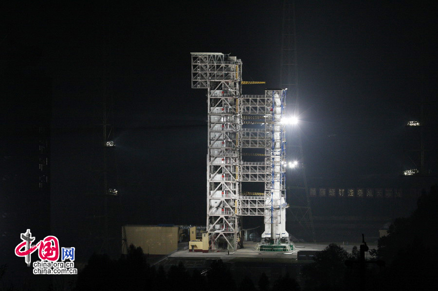 2013年12月1日,西昌衛(wèi)星發(fā)射中心發(fā)射塔架:夜幕下的西昌衛(wèi)星發(fā)射中心發(fā)射塔架“嫦娥三號(hào)”探測(cè)器即將在此升空。中國(guó)網(wǎng)記者鄭亮 攝影
