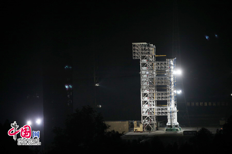 2013年12月1日,西昌衛(wèi)星發(fā)射中心發(fā)射塔架:夜幕下的西昌衛(wèi)星發(fā)射中心發(fā)射塔架“嫦娥三號”探測器即將在此升空。中國網(wǎng)記者鄭亮 攝影