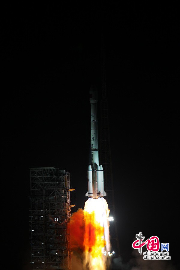 12月2日1時30分,搭載著嫦娥三號的長征三號乙運載火箭在西昌衛(wèi)星發(fā)射中心發(fā)射升空。中國網(wǎng)記者鄭亮 攝影