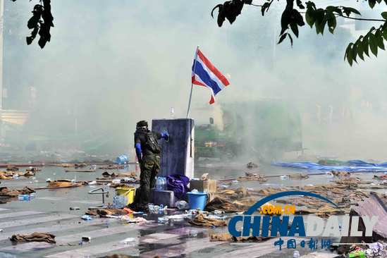 2013年12月2日,在泰國首都曼谷的警察局附近,示威現(xiàn)場一片混亂。(圖片來源:新華社)