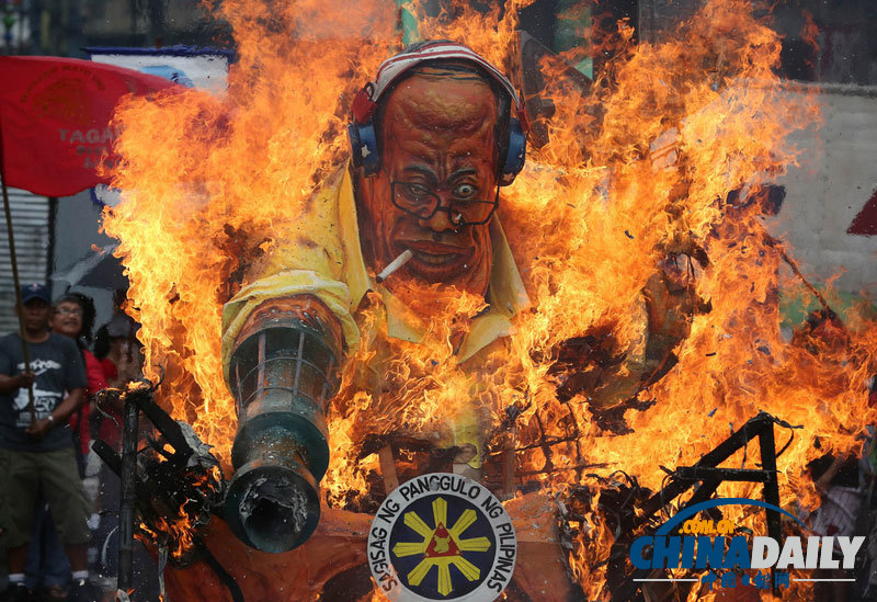 菲律賓民眾焚燒總統(tǒng)阿基諾模型 紀(jì)念國際人權(quán)日