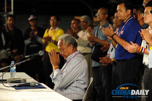 素貼呼吁民眾都站出來(lái)參加22日的抗議示威活動(dòng),一起來(lái)根除該國(guó)的“他信體制”。素貼聲言,12月22日將是正式把英拉拉下看守總理職位的一天。