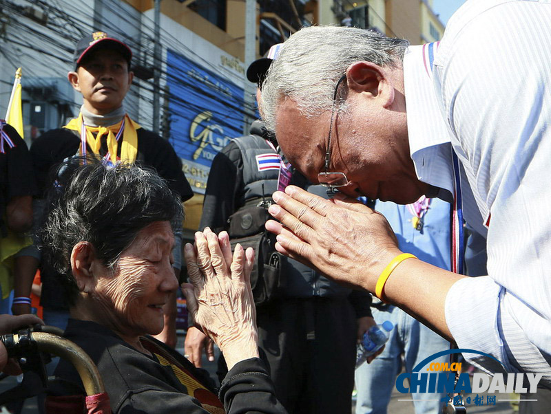 泰國示威聲勢已不如前 素貼親上前線作揖鼓舞士氣