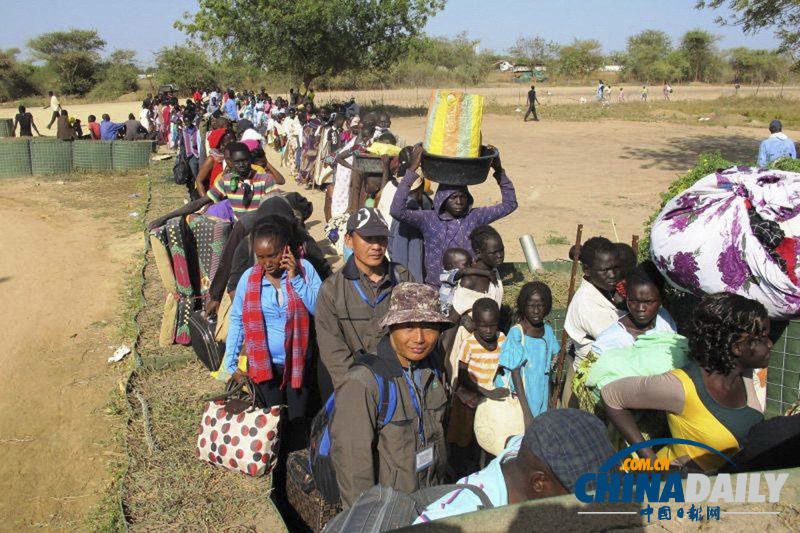 | 當(dāng)?shù)貢r(shí)間2013年12月17日,南蘇丹首都朱巴,平民抵達(dá)聯(lián)合國特派團(tuán)的駐地附近避難。據(jù)南蘇丹政府確認(rèn),過去幾天發(fā)生在該國首都朱巴不同軍事派別之間的沖突已導(dǎo)致約500人死亡,另有800多人受傷。與此同時(shí),南蘇丹總統(tǒng)基爾稱,他愿與政治對(duì)手前副總統(tǒng)馬沙爾進(jìn)行談判。此前,基爾曾指責(zé)馬沙爾企圖發(fā)動(dòng)政變。(圖片來源:東方IC) |