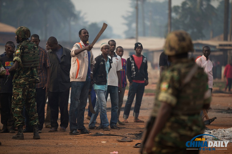 當?shù)貢r間2013年12月31日,中非班吉,布隆迪維和士兵試圖阻止穆斯林與基督教民兵組織起沖突。據(jù)悉,自2013年3月中非反政府武裝聯(lián)盟“塞雷卡”奪取了首都班吉的控制權以后,支持他們的穆斯林社團與以基督徒為主的民兵組織“反巴拉卡”之間沖突不斷,目前已造成數(shù)百人死亡,幾十萬人流離失所。(圖片來源:東方IC)