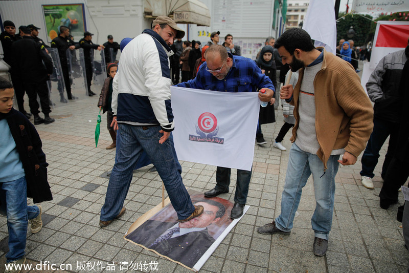 突尼斯“茉莉花”革命三周年 民眾踩踏前總統(tǒng)畫像慶祝