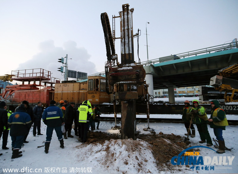 當(dāng)?shù)貢r(shí)間2014年1月22日,俄羅斯莫斯科,混凝土樁穿透莫斯科河畔線(Zamoskvoretskaya Line)隧道,事故造成地鐵停運(yùn),工人們現(xiàn)正抓緊時(shí)間將混凝土樁移除。事故責(zé)任由俄羅斯鐵路公司承擔(dān),該公司負(fù)責(zé)在該地區(qū)施工。
