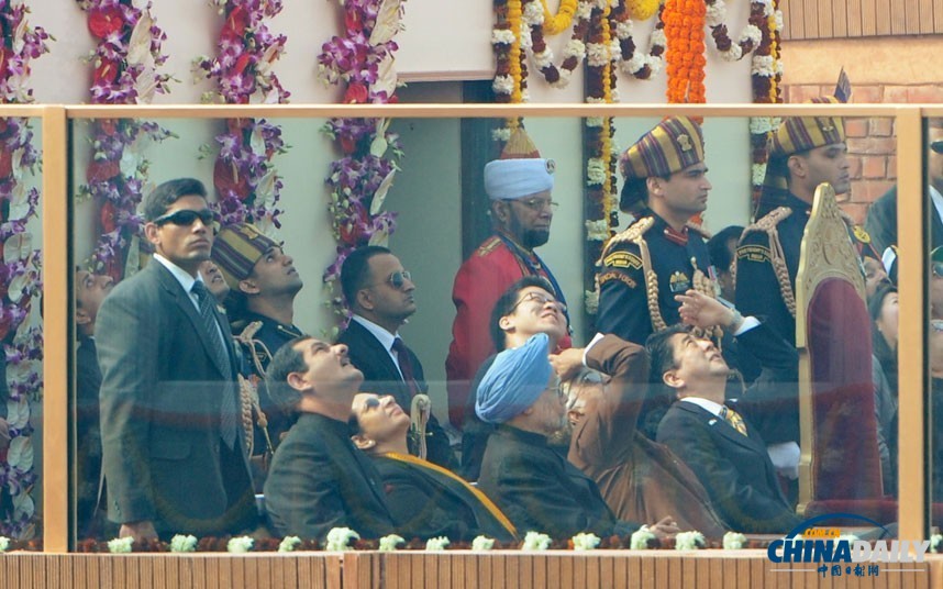 據(jù)英國媒體報(bào)道,當(dāng)?shù)貢r(shí)間1月26日,印度在首都新德里舉行第65個(gè)共和國日慶?;顒?dòng),在總統(tǒng)府到古王宮紅堡之間8公里長的地帶舉行了傳統(tǒng)的閱兵和游行活動(dòng)。印度軍方在閱兵中展示了先進(jìn)的巡航導(dǎo)彈、坦克和掃雷車等武器。此外,慶祝活動(dòng)還包括表現(xiàn)印度各地文化和生活的表演等。當(dāng)天,正在印度訪問的日本首相安倍晉三出席了閱兵式。這是日本首相首次出席該儀式。(圖片來源:英國媒體)