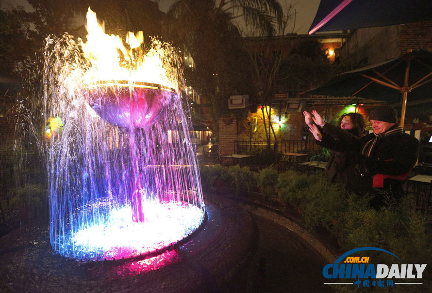 2014年1月28日,在路易斯安那州新奧爾良的一個(gè)酒吧,游客們正在借助噴泉暖手。(圖片來(lái)源:路透社)