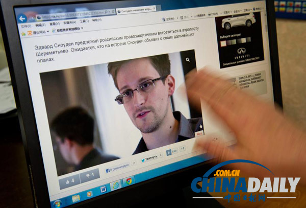 2013年7月12日,在俄羅斯首都莫斯科,一名俄羅斯新聞工作者打開(kāi)網(wǎng)頁(yè)瀏覽斯諾登最新訊息。(圖片來(lái)源:新華社)