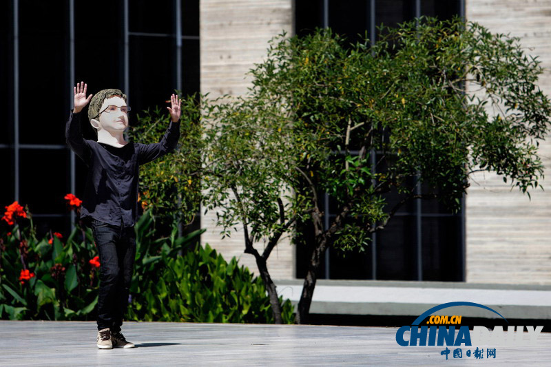 巴西民眾戴頭套表演 呼吁政府庇護斯諾登