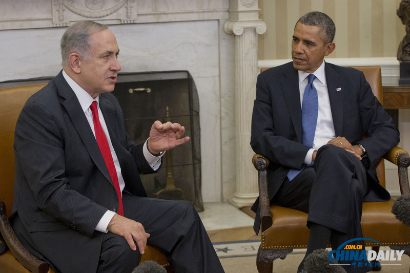 當地時間2014年3月3日,美國華盛頓,美國總統(tǒng)奧巴馬在白宮會見到訪的以色列總理內塔尼亞胡。雙方就伊朗核問題以及巴以和平進行會談。(來源:東方IC)