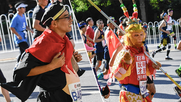除了這些出色的馬拉松選手,馬拉松比賽的另一個(gè)看點(diǎn)可以說是那些穿著奇裝異服來參跑的選手。今年的北馬又有哪些“奇人”來參賽呢?