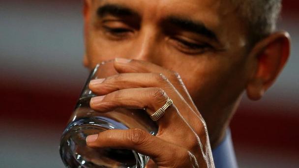 美國總統(tǒng)奧巴馬5月4日到訪飽受鉛水危機困擾的密歇根州弗林特市,當眾喝下過濾水,證明它是安全的。