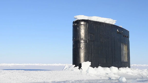 美國海軍“棘鬣魚”號訓(xùn)練營的一段視頻曝光,真實記錄了核潛艇在在北冰洋海軍基地里破冰而出,場面壯觀無比。