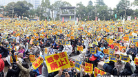 沖繩美軍基地的一名海軍士兵日前涉嫌在一家賓館里強奸一名日本女游客。當(dāng)?shù)貢r間21日,數(shù)千人聚集在美國海軍陸戰(zhàn)隊位于沖繩名護市的施瓦布軍營前,對此事進行抗議。