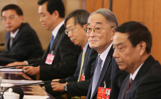 3月6日,全國政協(xié)十二屆四次會議在北京人民大會堂新聞發(fā)布廳召開記者會,邀請全國政協(xié)委員厲以寧、陳錫文、易綱、常振明、許家印就“十三五”經(jīng)濟(jì)發(fā)展問題回答記者提問。