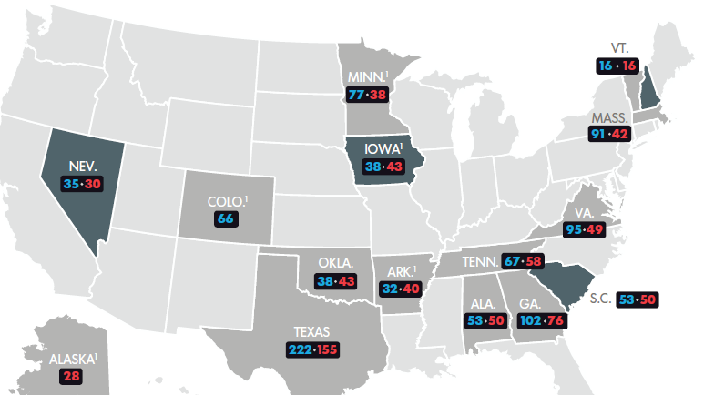 美國兩黨初選“超級星期二”激情選戰(zhàn)開鑼,兩黨共有12州舉行初選與黨團(tuán)會議。