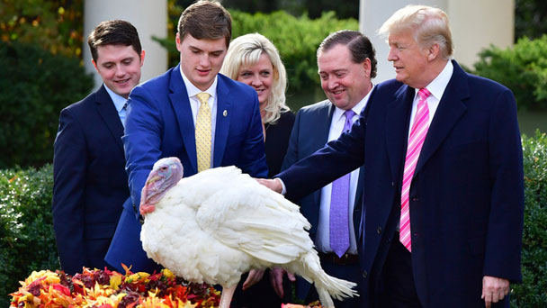 當(dāng)?shù)貢r(shí)間11月21日,美國(guó)華盛頓的白宮舉行一年一度的感恩節(jié)火雞赦免儀式,總統(tǒng)特朗普在儀式上赦免了一只名叫“鼓槌(Drumstick)”的火雞。