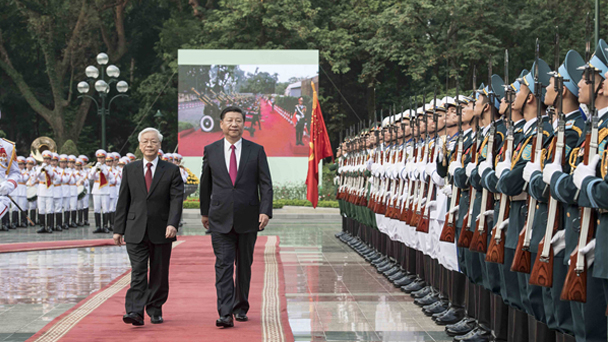 中共中央總書記、國家主席習近平12日在河內(nèi)越共中央駐地同越共中央總書記阮富仲舉行會談。雙方積極評價彼此發(fā)展成就,一致同意繼承、維護、發(fā)揚好中越傳統(tǒng)友誼,相互堅定奉行友好政策,把兩國全面戰(zhàn)略合作發(fā)展得越來越好,給兩國和兩國人民帶來更多切實利益。