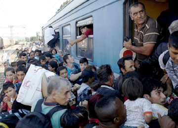 當(dāng)?shù)貢r間2015年8月15日,馬其頓蓋夫蓋利亞,數(shù)千非法移民拼命擠上經(jīng)過當(dāng)?shù)厍巴麪柧S亞邊境的火車,繼而前往希臘、意大利等歐洲國家。據(jù)當(dāng)?shù)孛襟w報道,這一人數(shù)每天都在增加。
