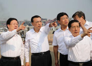 李克強總理16日下午在天津“8·12”瑞海公司危險品倉庫特別重大火災(zāi)爆炸事故現(xiàn)場。