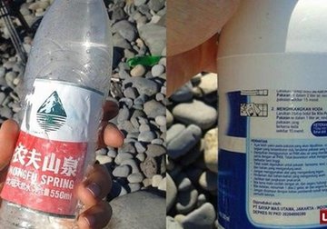據(jù)外媒報(bào)道,繼當(dāng)?shù)孛癖娫谟《妊蠓▽倭裟嵬魨u發(fā)現(xiàn)一塊疑似馬航MH370航班客機(jī)殘骸后,31日,在該地區(qū)又發(fā)現(xiàn)了一個(gè)農(nóng)夫山泉水瓶以及印尼清潔產(chǎn)品。