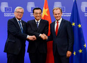當(dāng)?shù)貢r(shí)間6月29日下午,國(guó)務(wù)院總理李克強(qiáng)在布魯塞爾歐洲理事會(huì)總部同歐洲理事會(huì)主席圖斯克、歐盟委員會(huì)主席容克共同主持第十七次中國(guó)歐盟領(lǐng)導(dǎo)人會(huì)晤。有外媒評(píng)論說,中歐領(lǐng)導(dǎo)人正在勾勒出雙邊合作的嶄新前景;李克強(qiáng)承諾將繼續(xù)持有歐債,這對(duì)歐洲金融市場(chǎng)起到安撫作用。