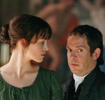 Collins: Dear Miss Elizabeth, I am sure my attentions have been too marked to be mistaken. Almost as soon as I entered the house, Isingled you outas the companion of my future life. But before I am run away with my feelings, perhaps I may state my reasons for marrying. Firstly, that it is the duty of a clergyman to set the example of matrimony in his parish. Secondly, that I am convinced it will add greatly to my happiness. And thirdly, that it is at the urging of my esteemed patroness, Lady Catherine, that I select a wife. My object in coming to Longbourn was to choose such a one from among Mr. Bennet's daughters, for I am to inherit the estate and such an alliance will surely…suit everyone. And now nothing remains but for me to assure you in the most animated language of the violence of my affections.