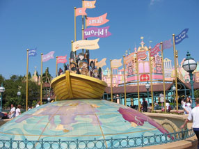 The next day, 10,000 members of the general public got their first peek. On the first day of its long history, Disneyland charged visitors $1.00 admission ($6.70 in 2005 dollars) to get through the gate and see three free attractions in four themed lands. Individual tickets for the 18 rides cost 10 to 35 cents each.