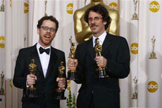 The Coen Brothers are a filmmaking duo known mostly for quirky dark comedies, including Raising Arizona (1987), Fargo (1996) and The Ladykillers (2004). Joel (b. 29 November 1954) and Ethan (b. 21 September 1957) grew up in Minnesota and went to college in Massachusetts. Joel got involved in the movie business in the early 1980s, including working with Sam Raimi on The Evil Dead (1981) and Crimewave (1985). The Coens' first film together, Blood Simple (1984), was a critical success and set them on a career path of independently made movies that get as much attention as big Hollywood productions. Although Joel is often credited as director and Ethan is credited as producer, they share filmmaking duties, including writing and editing. The Coen Brothers have had their ups and downs at the box office, but they have a loyal audience and a reputation as thoughtful movie makers. They won a screenwriting Oscar for Fargo (and Joel's wife, Frances McDormand, won an Oscar for Best Actress), and in recent years have worked with big-named stars such as George Clooney (2000's O Brother, Where Art Thou?), Billy Bob Thornton (2001's The Man Who Wasn't There), Catherine Zeta-Jones (2003's Intolerable Cruelty) and Tom Hanks (2004's The Ladykillers). Their other films include Miller's Crossing (1990), Barton Fink (1991) and The Big Lebowski (1998). Their 2007 adaptation of Cormac McCarthy's novel No Country for Old Men won them Oscars for writing, direction and best picture.