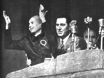 在艾薇塔的幫助下,貝隆在1946年的阿根廷大選中獲勝,27歲的艾薇塔也成了阿根廷的第一夫人。貝隆得到了54%得選票,雖然這個數(shù)字不是很大,但是那場大選中候選人有二十位之多,其他人所得的選票數(shù)目根本就不能和貝隆相比。貝隆的選票主要來自 descamisados,就是工人階層,descamisados 一詞的本義,就是“無襯衫的”。艾薇塔和貝隆竭盡全力爭取并延續(xù)下來了這些人的信任,也因為艾薇塔致力于為窮人謀福利,她一直受到富人和中等階層的排擠。