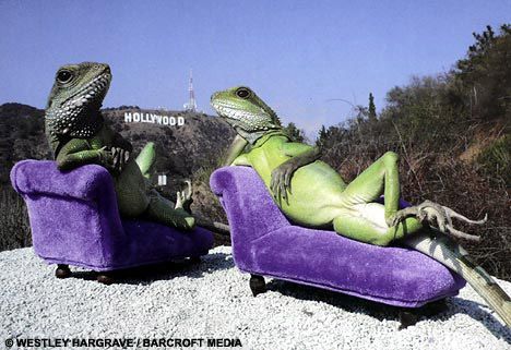美國爬行動(dòng)物專家亨利·斯奇夫博格是一位蜥蜴愛好者,在其位于洛杉磯的家中飼養(yǎng)著50多只大小不同的蜥蜴。亨利特別訓(xùn)練了這些懶惰的綠色小家伙,它們可以在特別設(shè)計(jì)的迷你沙發(fā)、吊床以及沖浪板上像人一樣擺出各種忍俊不禁的姿勢(shì)。