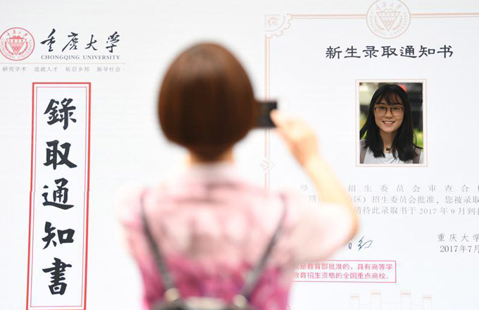 A freshman fills forms to register at Chongqing University in Chongqing, Southwest China, Sept 8, 2017.