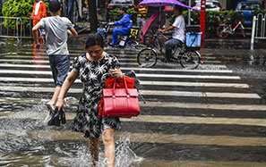 Guangdong province was battered by its third typhoon in 12 days on Monday, with torrential rains again flooding urban areas in several cities.