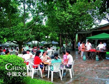 Hangzhou and Chengdu are undoubtedly the best in terms of popularity of their tea houses. It is common to see people cluster along the street drinking tea, chatting or playing mah-jongg. Spending a whole day at a tea house is the unique culture of the two cities; low prices make it more feasible there. Certainly, there are some differences between the tea houses of Hangzhou and Chengdu. Hangzhou is famous for its beautiful scenery; drinking tea in the open air is an agreeable enjoyment.